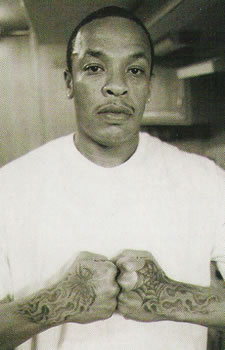 Dr. Dre has a couple of visible tattoos which we know about, including a spider with flames on his right hand and a spiderweb with flames on his left hand.